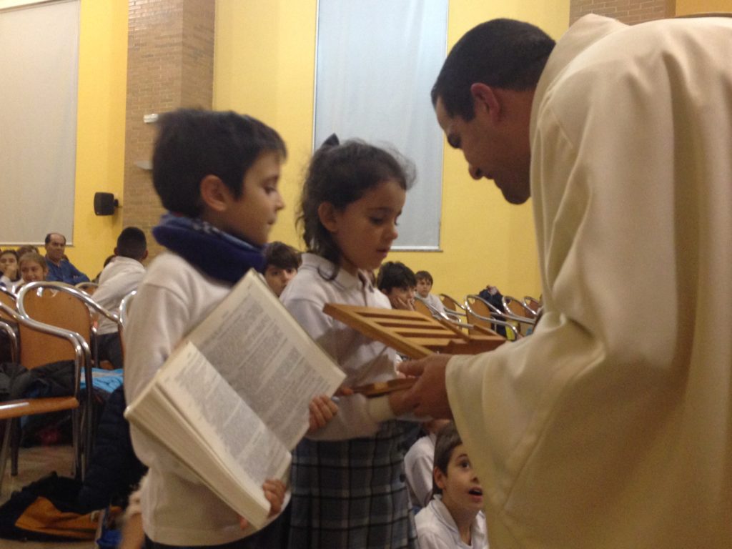 La capilla llena de padres, alumnos y profesores fue testigo de las ofrendas, los cantos, las peticiones y los agradecimientos de alumnos desde 1º hasta 6º que con tanto amor han preparado para celebrar esta tarde tan especial.